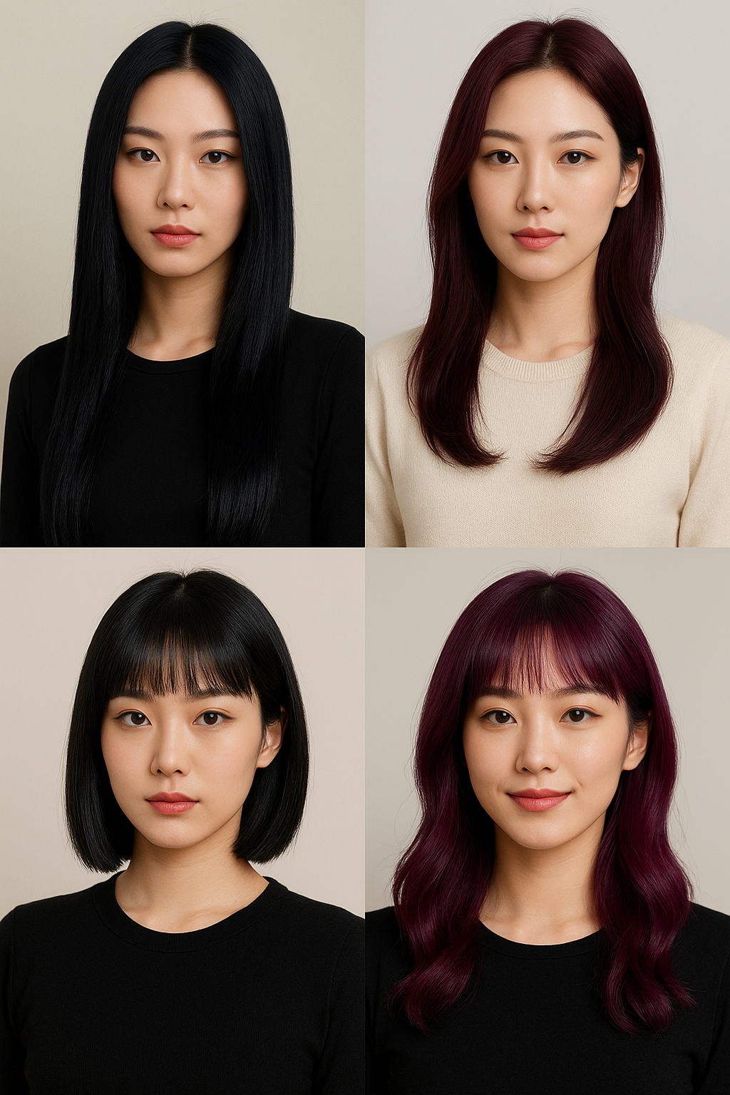 ▸ 블루블랙, 쿨 버건디, 다크 애쉬, 푸시아 퍼플 - 어울리는 스타일